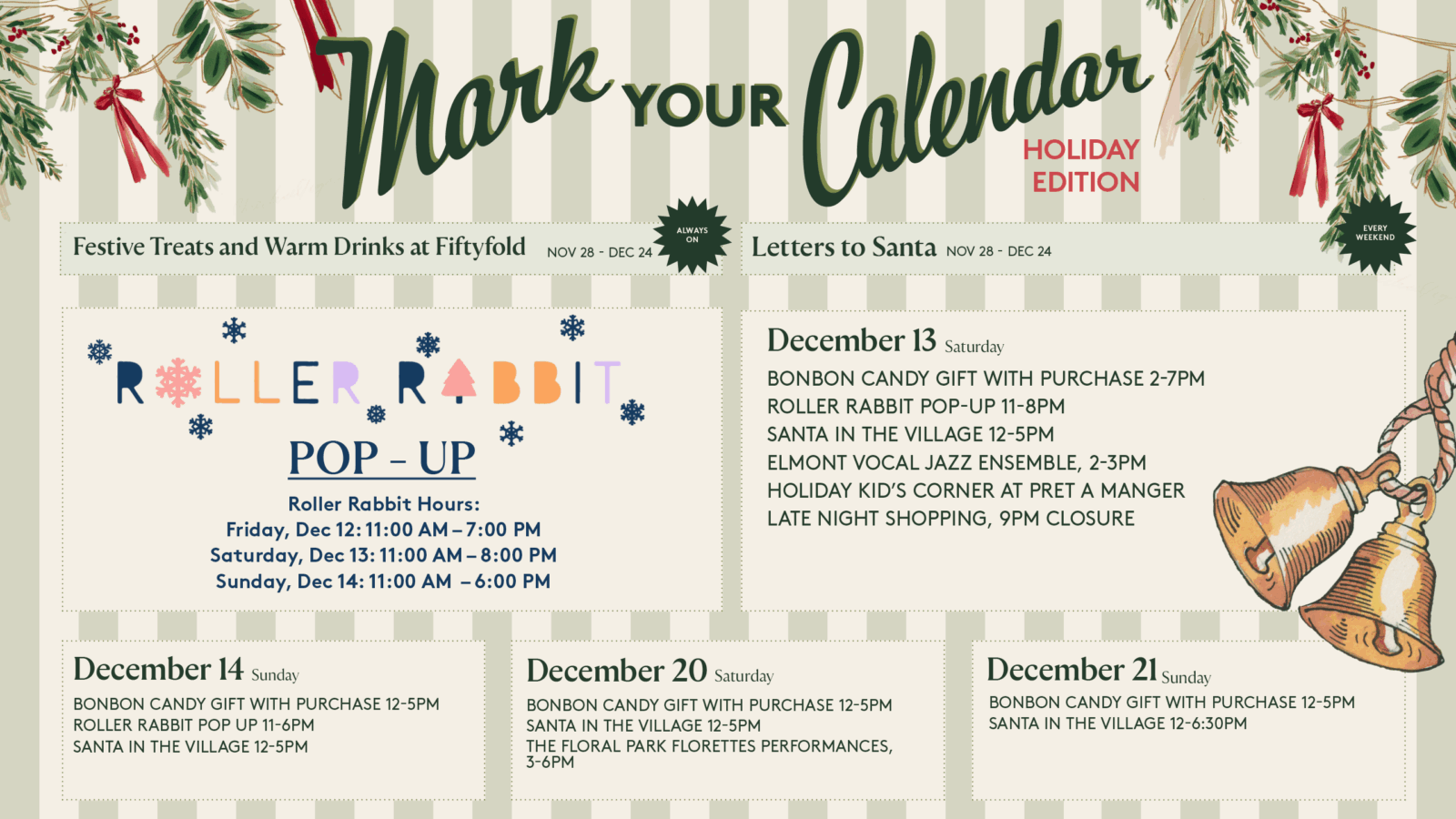 Join us this Saturday for late-night shopping until 9PM and check out the calendar the see what’s on this holiday season.